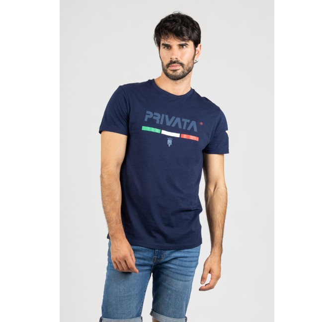 Vista rápida Añadir a deseos Añadir para comparar CAMISETA MANGA CORTA Camiseta manga corta con cuello redondo . Camiseta en tono azul marino con estampación frontal de logo PRIVATA y detalle tricolor, ideal para...