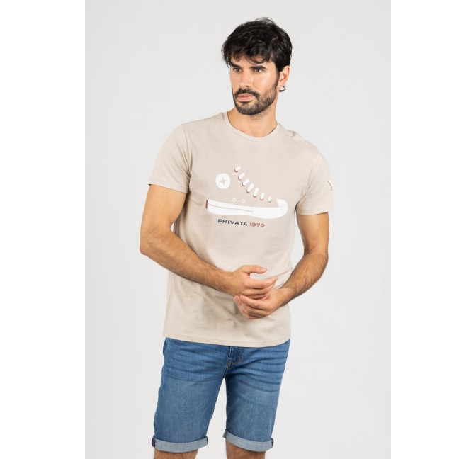 Vista rápida Añadir a deseos Añadir para comparar CAMISETA MANGA CORTA Camiseta manga corta con cuello redondo . Camiseta en tono beige con estampación frontal de inspiración urbana, ideal para un look casual y...