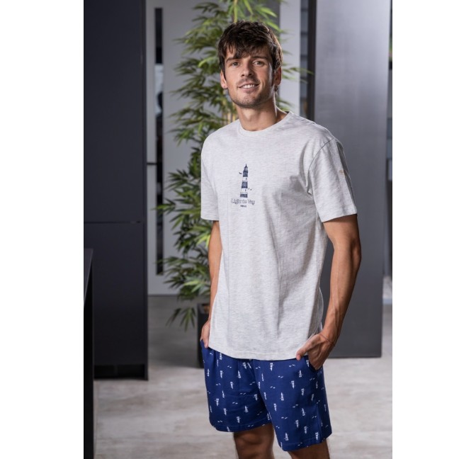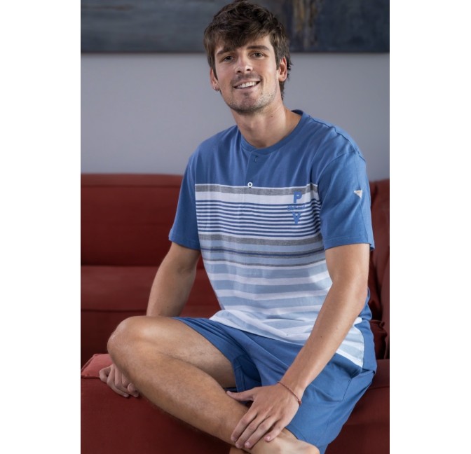 Refresca tu estilo con esta camisa de manga corta y estampado floral en tonos azules. Su diseño vibrante y...