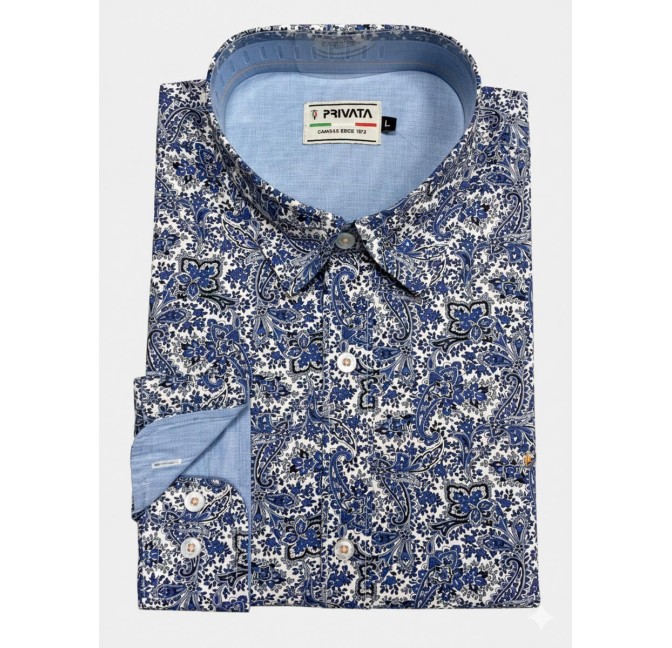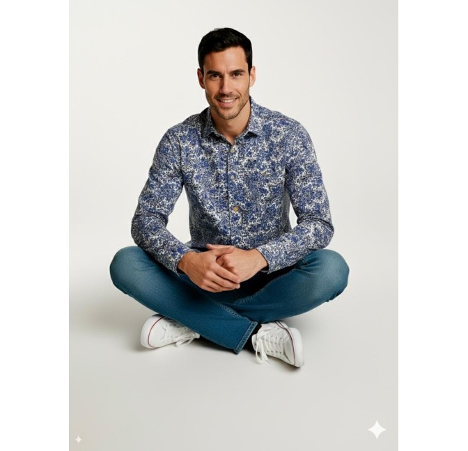 Atrévete con un look más sofisticado y con personalidad con esta camisa slim de estampado paisley. Su diseño detallado en tonos azules aporta un estilo elegante y actual, ideal para destacar en cualquier ocasión.