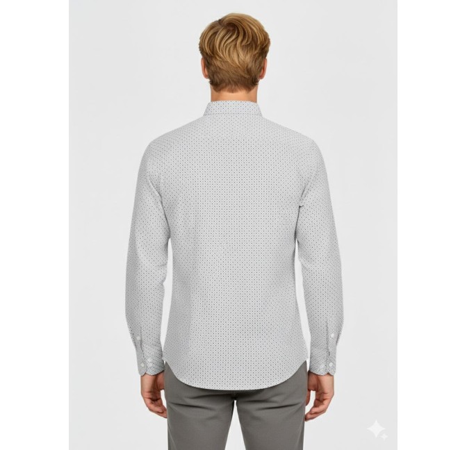 Una camisa versátil con un diseño actual que aporta un toque diferencial a tus looks diarios. Su patrón de micro puntos en contraste le da personalidad sin perder la elegancia de un básico.