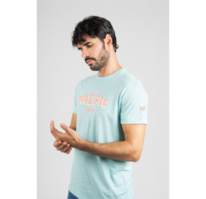 Camiseta en tono verde agua con estampación frontal “Pacific”, ideal para un look veraniego y desenfadado.