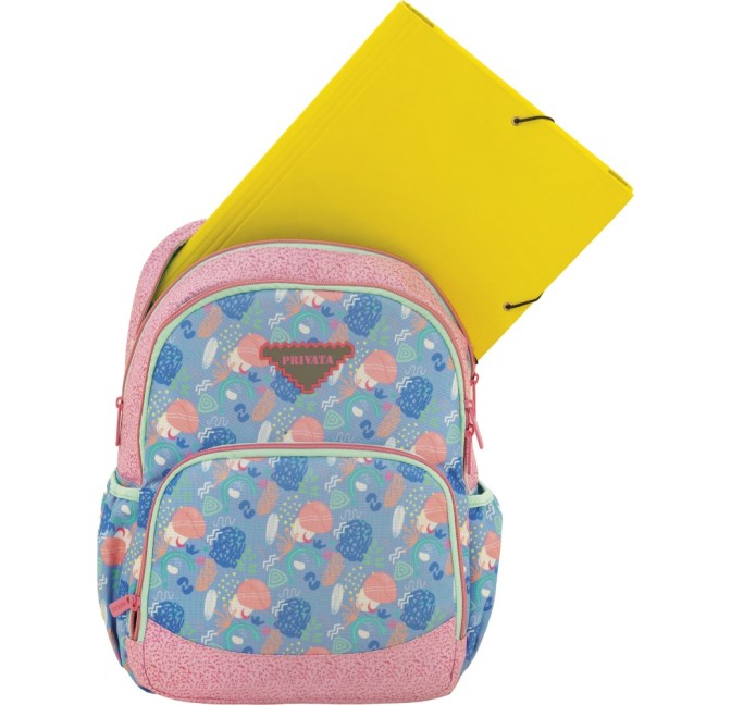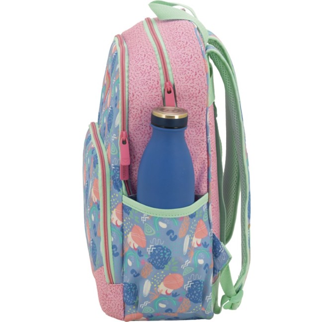 - Mochila de doble cuerpo adaptable a carro con espalda y base acolchada. Tirantes ergonómicos, acolchados y reflectantes con material transpirable. Compartimento principal para libros, carpetas y archivadores. Bolsillo frontal. Bolsillo lateral para botella.