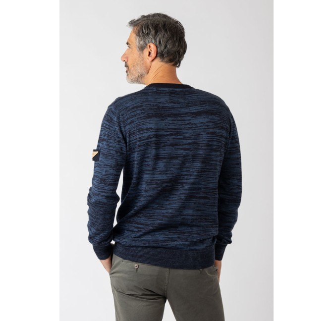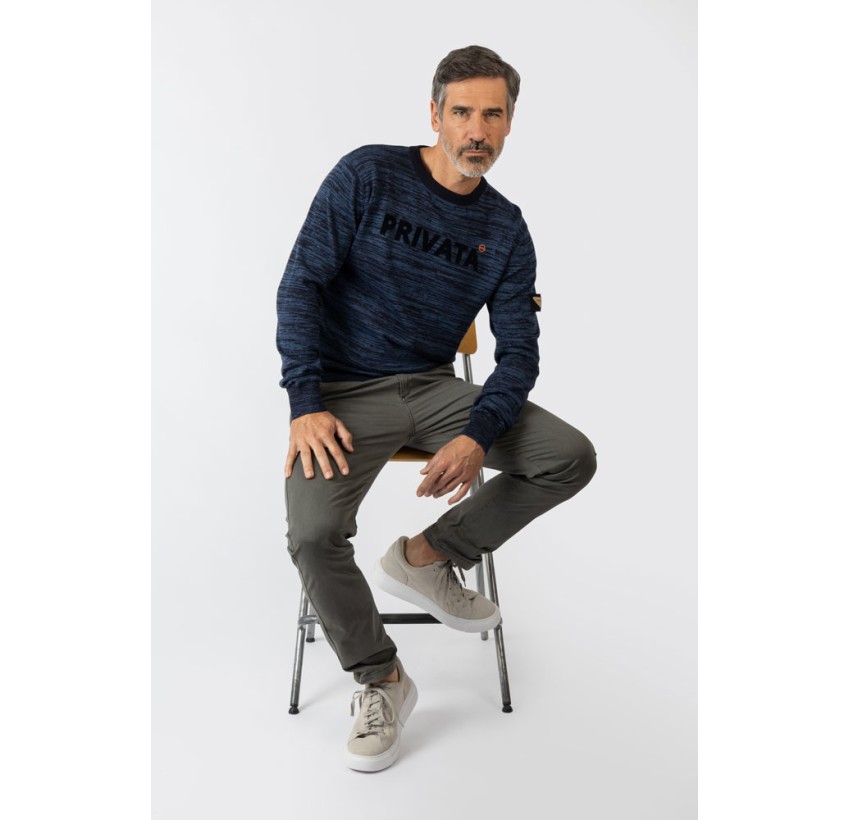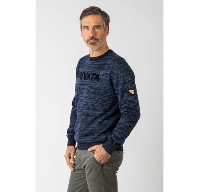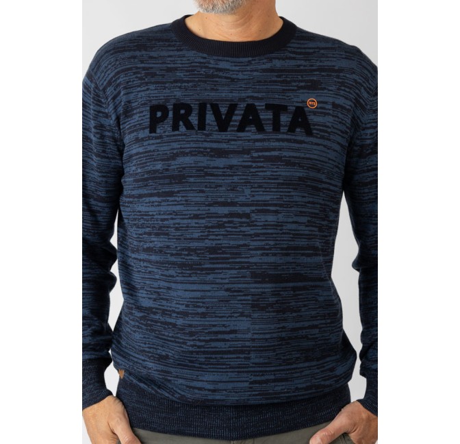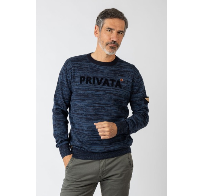 Siente el espíritu Privata con jersey cuello redondo, tejido confortable y agradable. Jersey con textura y con estampado en pecho.