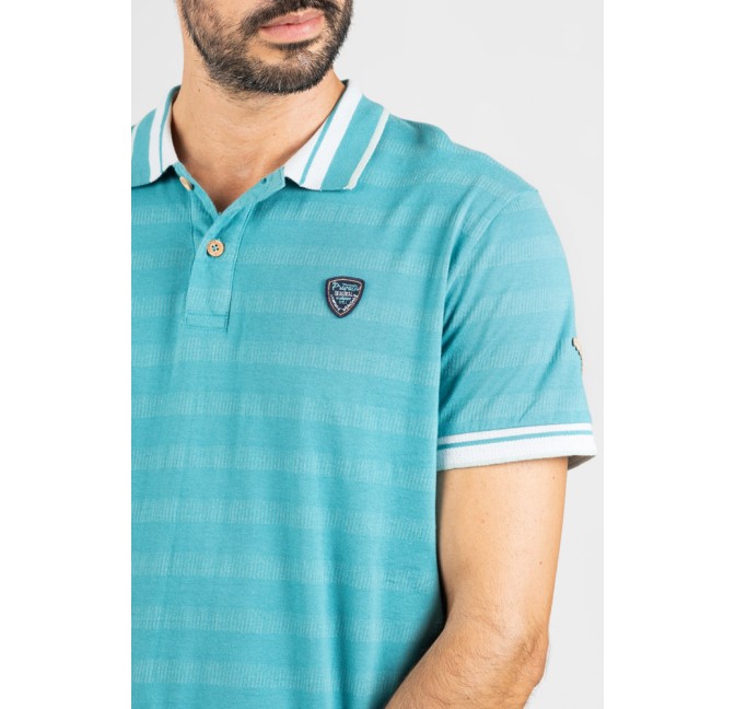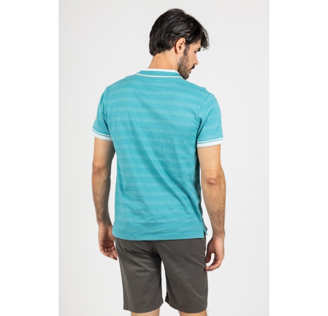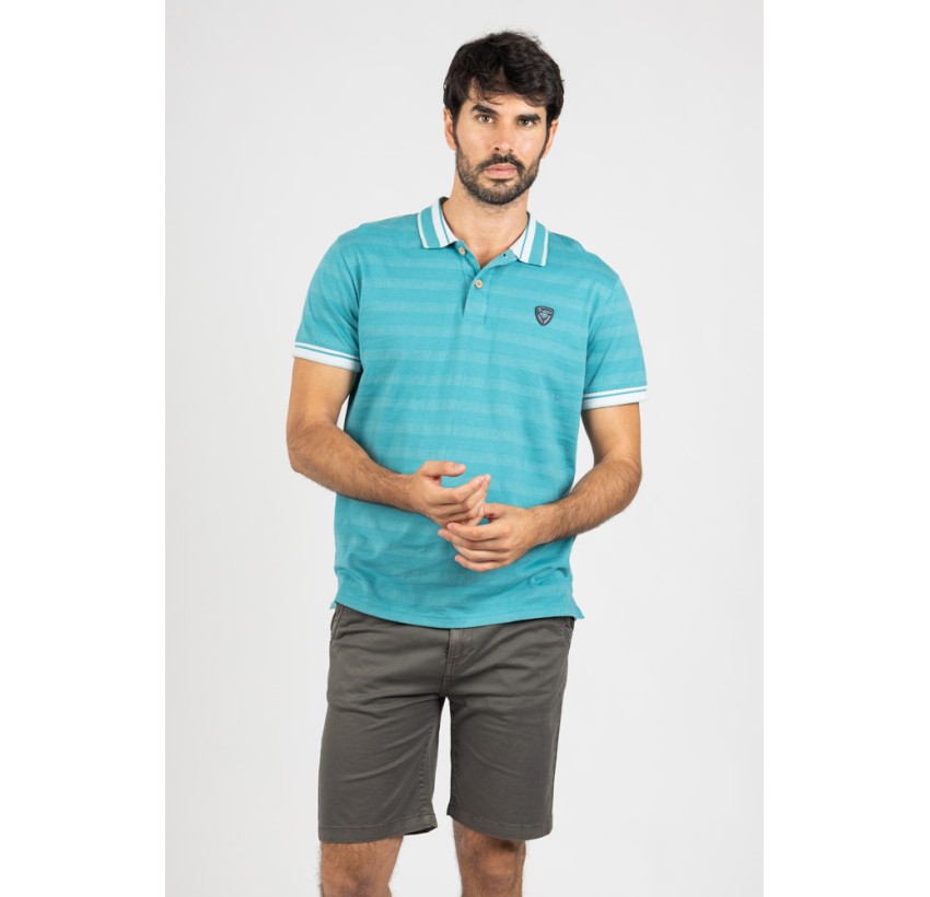 Polo en tono turquesa con textura de micro raya, una opción fresca y actual para los días de verano.