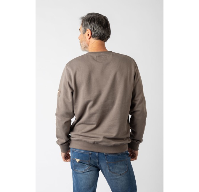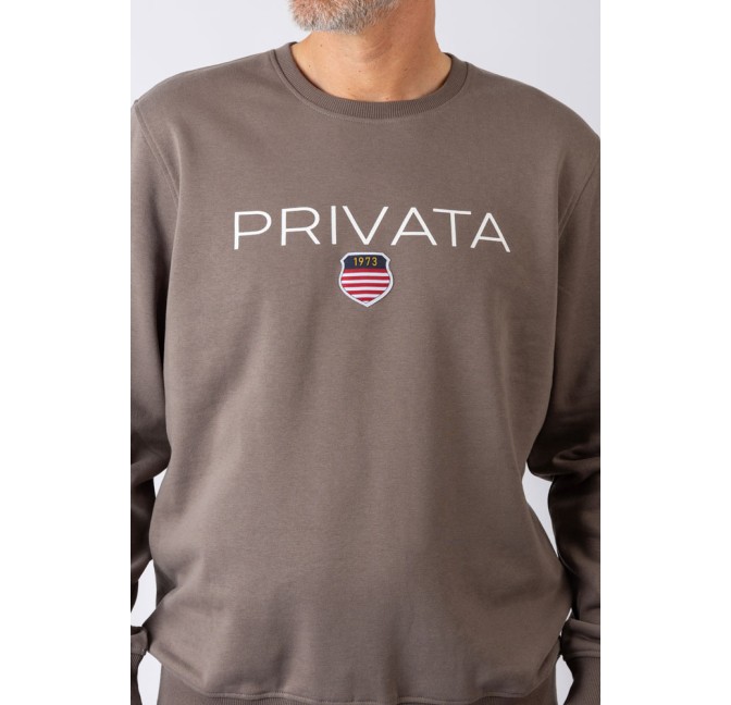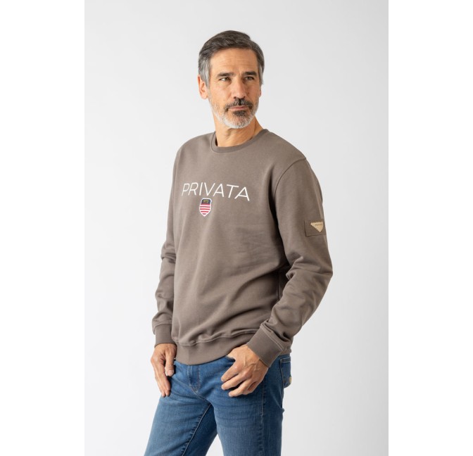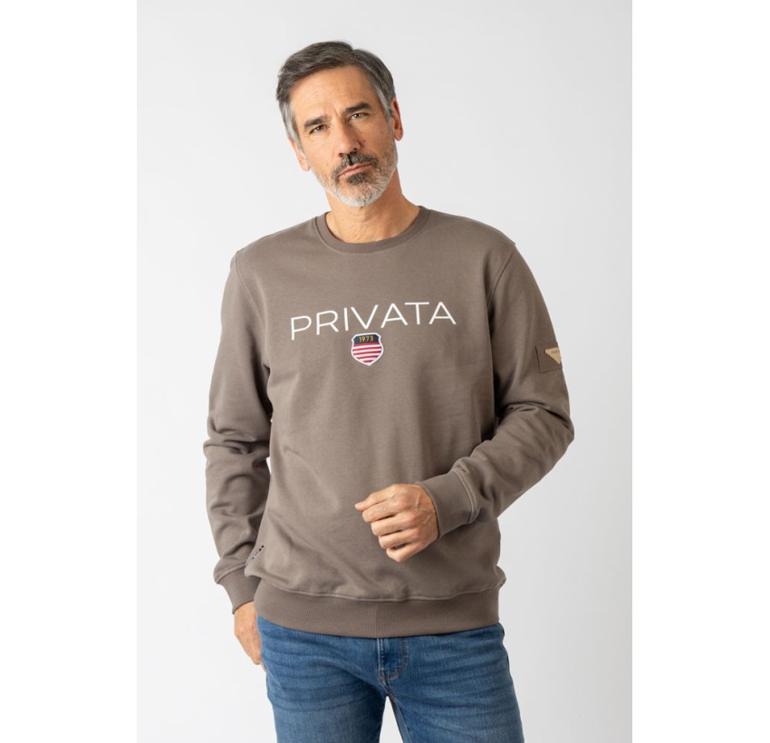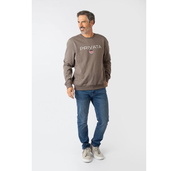 Sudadera con cuello redondo y tejido suave, combinación gráfica bordada en el pecho.