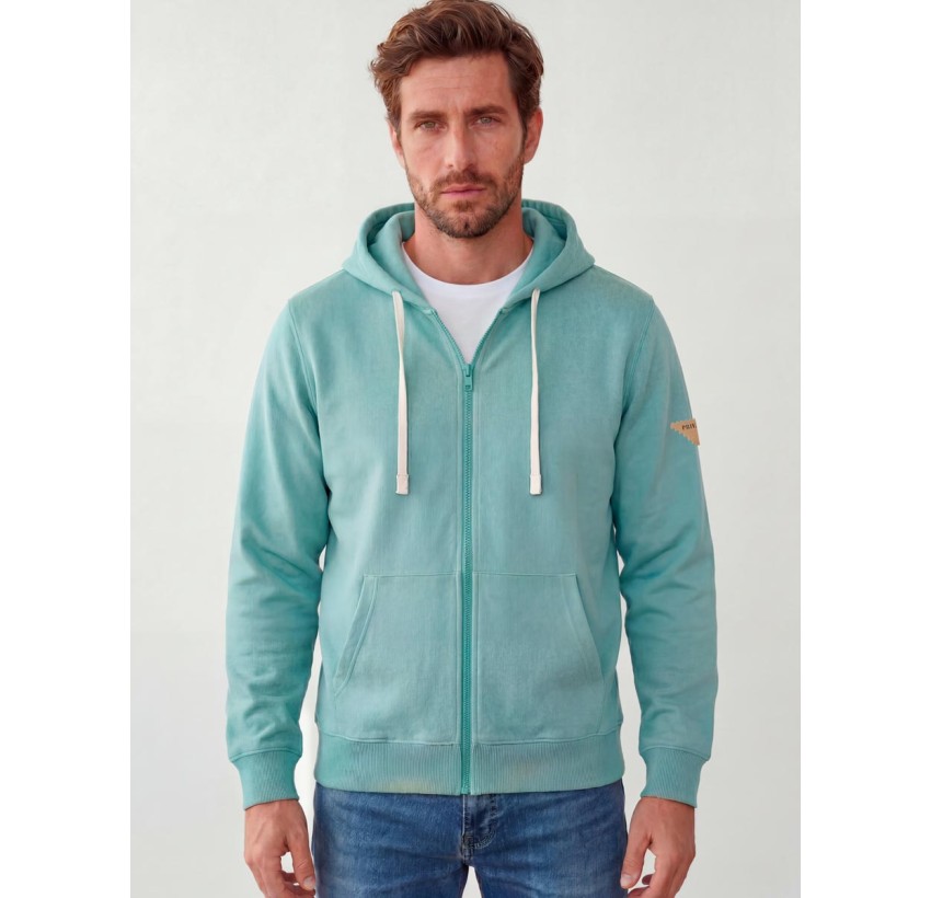 Sudadera básica con capucha abierta con cremallera.